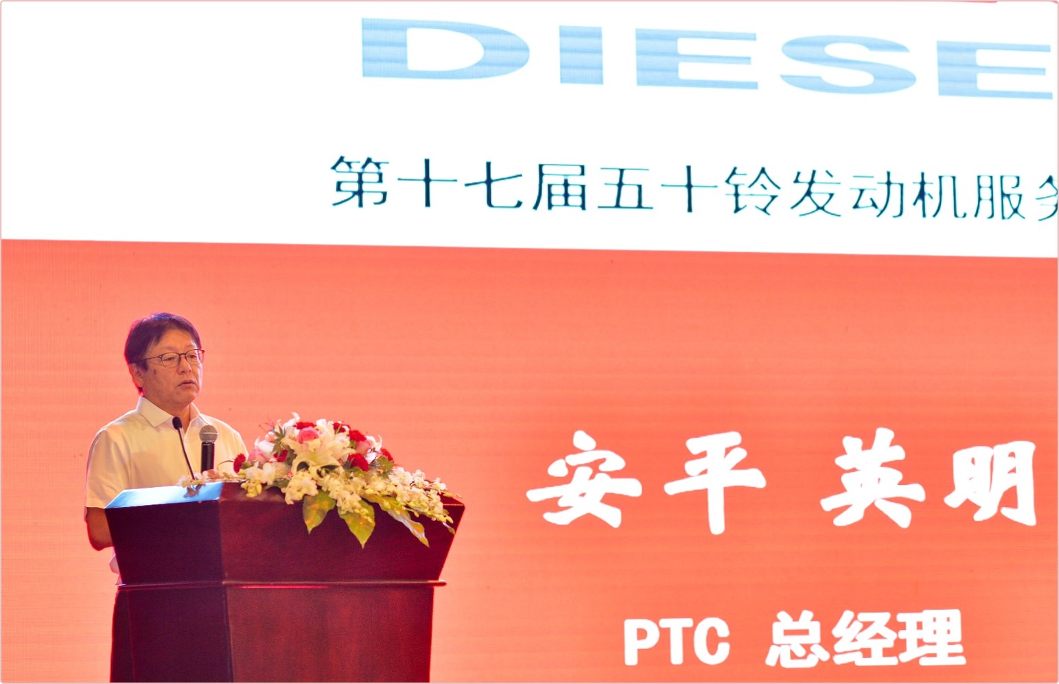會議上,PTC總經(jīng)理 安平英明致辭。安平總經(jīng)理首先對中國政府在疫情方面做出的努力和付出表示感謝。疫情期間,PTC的事業(yè)保持著發(fā)展的步伐,并取得了良好的發(fā)展結(jié)果,這離不開當(dāng)下國內(nèi)穩(wěn)定的社會環(huán)境,和國家各項發(fā)展政策的支持。同時,安平總經(jīng)理指出,服務(wù)站各位是支撐PTC發(fā)展的幕后英雄,對他們的默默付出表示感謝。安平總經(jīng)理介紹了目前的挖機(jī)市場動向,搭載五十鈴發(fā)動機(jī)的挖機(jī)市場保有量等重要市場信息,除此之外,還提到了為應(yīng)對明年將要正式實施的國四排放法規(guī)而采取的后處理器對策,并表示這一新的變化在準(zhǔn)備充分的前提下對各方來說都將是發(fā)展的一大機(jī)遇。在全球經(jīng)濟(jì)受新冠疫情影響而發(fā)展緩慢的情況下,中國經(jīng)濟(jì)在以習(xí)近平為核心的黨中央的堅強(qiáng)領(lǐng)導(dǎo)下將會繼續(xù)呈發(fā)展進(jìn)步態(tài)勢,因此,對于未來事業(yè)的發(fā)展,服務(wù)站各位及PTC都有充分的信心。
