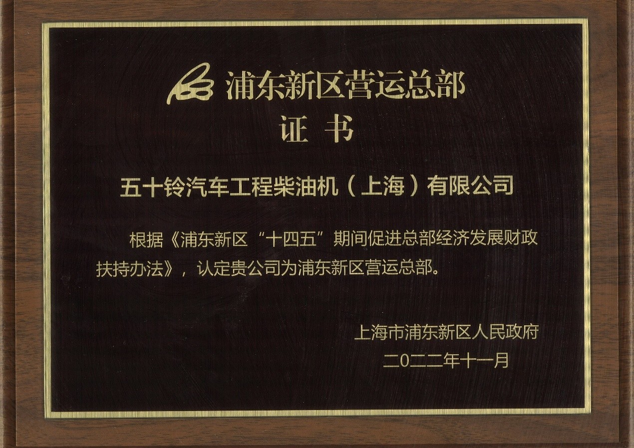 經(jīng)過層層考核和篩選,五十鈴汽車工程柴油機(jī)(上海)有限公司有幸在本次大會(huì)中被認(rèn)定為浦東新區(qū)營運(yùn)總部。這無疑是浦東新區(qū)政府對五十鈴的高度信任和認(rèn)可的體現(xiàn)。我司總經(jīng)理安平英明當(dāng)日參加頒獎(jiǎng)儀式,代表我司取得了認(rèn)定證書。